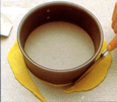 Einen Kreis in Springformgröße ausschneiden und in die Form legen.