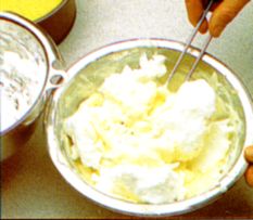 schlagen, Quark, das übrige Mehl und Zitronenschale unterrühren. |